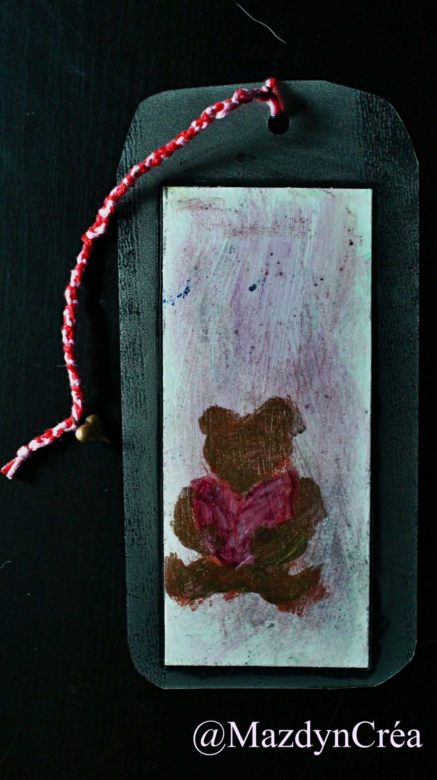 Dimensions : 7,5 x 14,5 cm et tresse de coton 17 cm